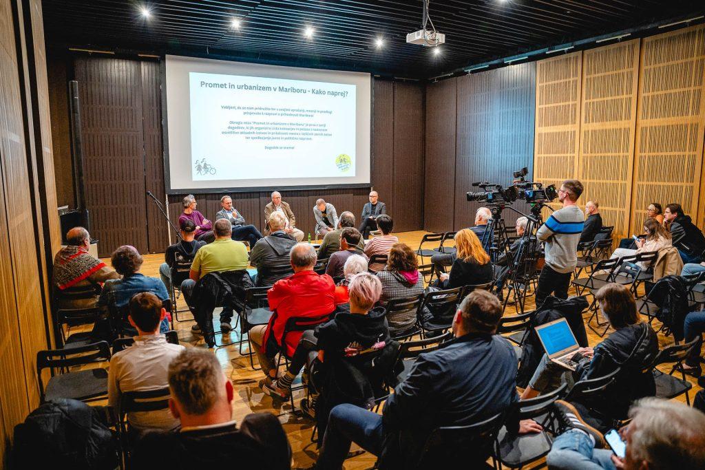 Okroglo mizo je moderiral Miha Lovše, v razpravi pa so sodelovali dr. Samo Peter Medved, podžupan za promet Mestne občine Maribor, Gregor Reichenberg, podžupan za prostor, dr. Andrej Šmid, predsednik Društva arhitektov Maribor, ter Josip Rotar, predsednik Liste kolesarjev in pešcev ter član Mestnega sveta MOM. Razprava je odsevala kompleksnost urbanističnih in prometnih izzivov, s katerimi se sooča Maribor, vključno z načrtovano gradnjo garažne hiše pri Ljudskem vrtu, umirjanjem prometa na Slomškovem trgu in potencialno gradnjo tunela pod mestom.